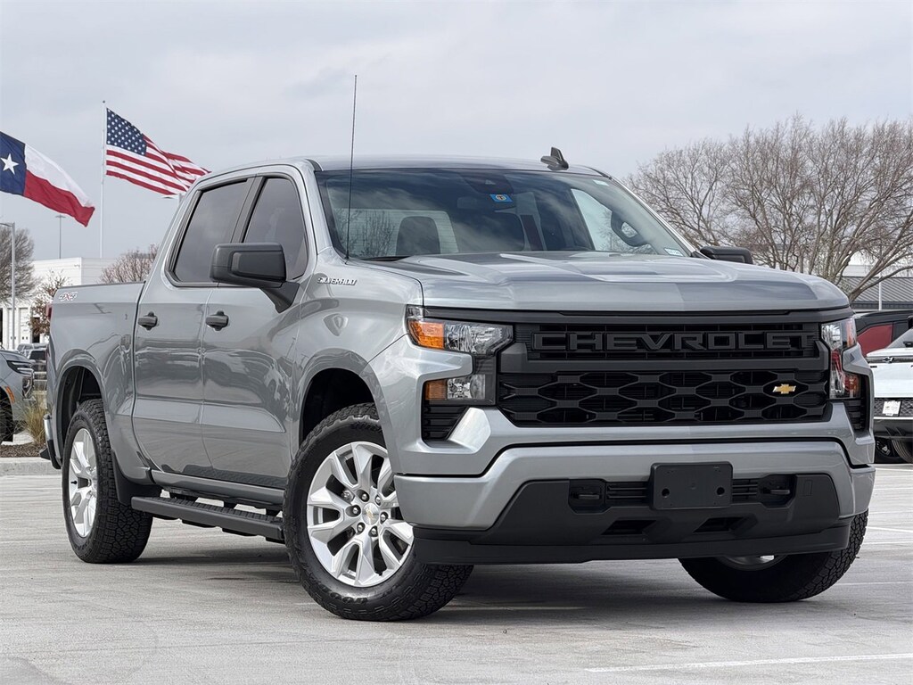 4D Crew Cab Sterling Gray Metallic 2023 Chevrolet Silverado 1500 Custom 18/21 City/Highway MPG 2.7L Turbo 8-Speed Automatic 4WD