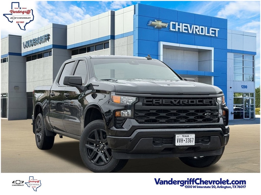 VEHICLE DETAILED, RECENT OIL CHANGE, PASSED DEALER INSPECTION, 8-Speed Automatic, Black Cloth.CARFAX One-Owner. Clean CARFAX.Certified. Chevrolet Certified Pre-Owned Details:* Vehicle History* Powertrain Limited Warranty: 72 Month/100,000 Mile (whichever comes first) from original in-service date* Transferable Warranty* Limited Warranty: 12 Month/12,000 Mile (whichever comes first) from certified purchase date* 172 Point Inspection* Warranty Deductible: $0* Roadside Assistance* 24 months/24,000 miles (whichever comes first) Certified Pre-Owned Scheduled Maintenance Plan and 3 days/150 miles (whichever comes first) Vehicle Exchange Program. SiriusXM 3-month trial subscription.4D Crew Cab Black 2025 Chevrolet Silverado 1500 Custom 18/21 City/Highway MPG 2.7L I4 Turbocharged DOHC 16V LEV3-SULEV30 310hp 8-Speed Automatic RWDBENEFITS OF BUYING CERTIFIED: Roadside Assistance 172 Point Inspection Powertrain Limited Warranty: 72 Month/100,000 Mile (whichever comes first) from original in-service date 24 months/24,000 miles (whichever comes first) CPO Scheduled Maintenance Plan SiriusXM 3-month trial subscription Limited Warranty: 12 Month/12,000 Mile (whichever comes first) from certified purchase date AND MORE!!! We will be more than happy to answer any questions you may have, send you additional photos, or set you an appointment to see it in person from our Product Specialist. Please call at (817) 305-7391! All vehicles must pass state inspection and meet all safety standards prior to finalization of sale. Prices are fluid and change daily due to market conditions or reconditioning needs to meet retail standards. We do not hold cars, its first come first serve so call now while its here! The price offerings on this web site constitute a private offer not available to the general public. To qualify for these prices, you must print the screen for the vehicle selected and present it in person. ! ! ! Call today (682)-301-7391 ! ! !