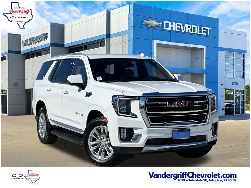 VEHICLE DETAILED, RECENT OIL CHANGE, PASSED DEALER INSPECTION.Certified. GMC Certified Pre-Owned Details:* 172 Point Inspection* Warranty Deductible: $0* Powertrain Limited Warranty: 72 Month/100,000 Mile (whichever comes first) from original in-service date* 24 months/24,000 miles (whichever comes first) Certified Pre-Owned Scheduled Maintenance Plan and 3 days/150 miles (whichever comes first) Vehicle Exchange Program. SiriusXM 3-month trial subscription* Limited Warranty: 12 Month/12,000 Mile (whichever comes first) from certified purchase date* Transferable Warranty* Roadside Assistance* Vehicle History4D Sport Utility Summit White 2021 GMC Yukon SLT Odometer is 13561 miles below market average! EcoTec3 5.3L V8 10-Speed Automatic with Overdrive RWDBENEFITS OF BUYING CERTIFIED: Roadside Assistance 172 Point Inspection Powertrain Limited Warranty: 72 Month/100,000 Mile (whichever comes first) from original in-service date 24 months/24,000 miles (whichever comes first) CPO Scheduled Maintenance Plan SiriusXM 3-month trial subscription Limited Warranty: 12 Month/12,000 Mile (whichever comes first) from certified purchase date AND MORE!!! We will be more than happy to answer any questions you may have, send you additional photos, or set you an appointment to see it in person from our Product Specialist. Please call at (817) 305-7391! All vehicles must pass state inspection and meet all safety standards prior to finalization of sale. Prices are fluid and change daily due to market conditions or reconditioning needs to meet retail standards. We do not hold cars, its first come first serve so call now while its here! The price offerings on this web site constitute a private offer not available to the general public. To qualify for these prices, you must print the screen for the vehicle selected and present it in person. ! ! ! Call today (682)-301-7391 ! ! !