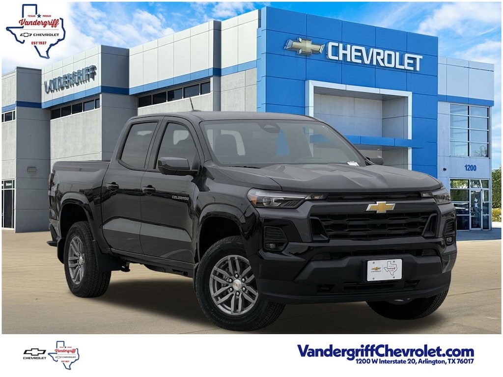 4WD, ABS brakes, Alloy wheels, Compass, Electronic Stability Control, Front dual zone A/C, Heated door mirrors, Heated front seats, Illuminated entry, Low tire pressure warning, Remote keyless entry, Traction control.4D Crew Cab Black 2026 Chevrolet Colorado LT18/23 City/Highway MPG2.7L I4 Turbocharged DOHC 16V LEV3-ULEV50 310hp 4WD 8-Speed AutomaticVandergriff Chevrolet has been Dealer of the Year since 2018!!! Here at Vandergriff Chevrolet you will find low cost and affordable gas saving used pre owned and certified pre owned along with luxury pre owned!! We have it all, if you donât see what you are looking for WE CAN LOCATE IT. Our showroom amenities and service drive are open extended hours for your convenience. Please stop by and see why were the BEST PLACE to buy your next new or used Chevrolet, EMPLOYEE PRICING FOR EVERYONE HURRY! Visit our REDESIGNED State-of-the-Art Dealership. Not to mention a HUGE selection of New Pre-Owned vehicles will make Vandergriff Chevrolet your premiere choice for Chevrolet dealerships in the Dallas Fort Worth area. Stop by and see why we are where DFW SHOPS FOR USED CARS Customer Requested and Dealer Added Options are extra. Serving the DFW Metroplex for over 80 Years, Vandergriff Chevrolet located at 1200 W. I-20 in Arlington TX is your premier retailer of new and used Chevrolet vehicles. Our dedicated sales staff and top-trained technicians are here to make your shopping and service experience fun, easy and financially advantageous. Please utilize our various online resources and allow our excellent network of people to put you in your ideal car truck or SUV today. Serving Arlington Grand Prairie Forth Worth Mansfield Burleson Irving Hurst Euless Bedford Plano McKinney Tyler Midlothian Weatherford Grapevine Frisco Little Elm Irving Grapevine Dallas The colony Waxahachie Austin Houston and many other outlining cities. The Vandergriff Protection Package adds great peace of mind knowing that the vehicle has been inspected and reconditioned. All vehicles must pass state inspection and meet all safety standards prior to finalization of sale. Prices are fluid and change daily due to market conditions or reconditioning needs to meet retail standards. We do not hold cars, it's first come first serve so call now while it's here! ! ! ! Call today (682)-301-7391 ! ! !Price does not include tax, title, license, or dealer added equipment.