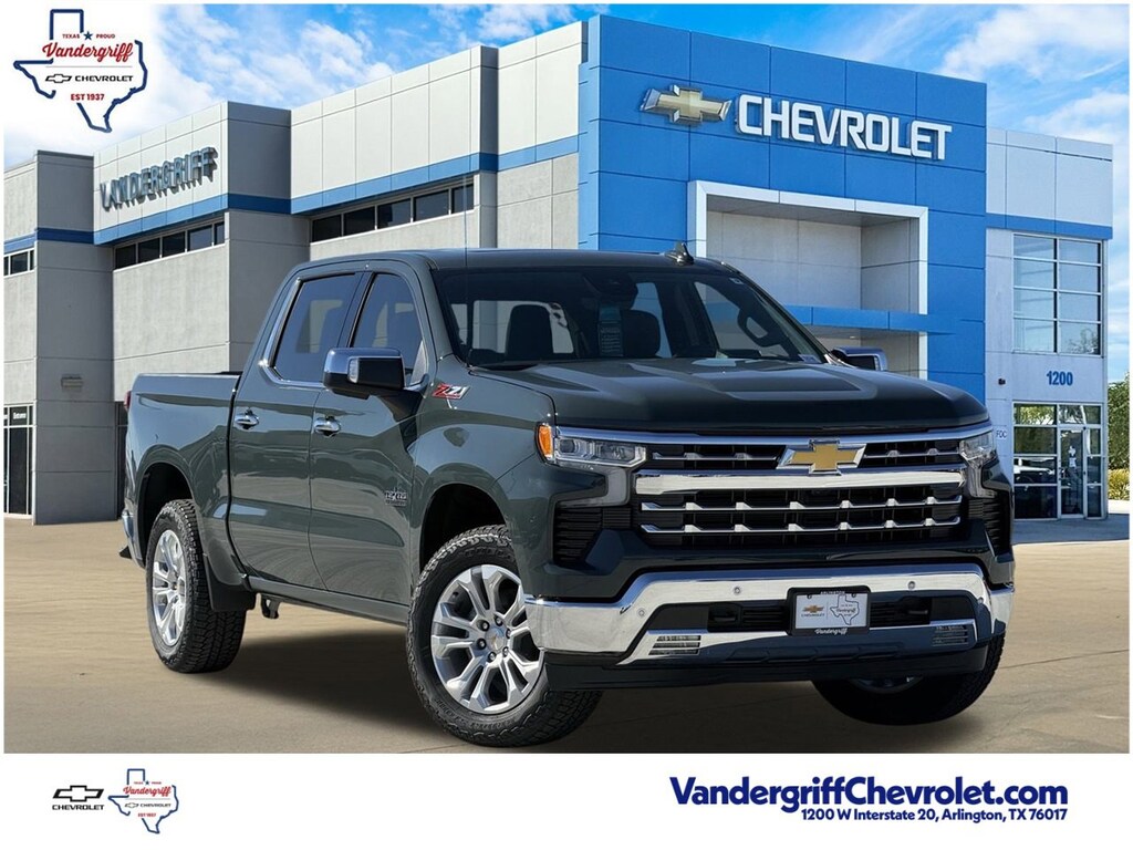10-Speed Automatic, 4WD, Jet Black Leather, 15 Diagonal Multicolor Head-Up Display, 2 USB Data Ports, 2nd Row Heated Outboard Seats, Adaptive Cruise Control, Bed View Camera, Dual Exhaust w/Black Exhaust Tips, Floor Mounted Center Console, HD Surround Vision, Heavy-Duty Air Filter, High Capacity Suspension Package, Hill Descent Control, Hitch Guidance, LTZ Convenience Package, LTZ Convenience Package II, LTZ Plus Package, LTZ Premium Texas Edition, Off-Road Suspension, Perimeter Lighting, Power Sliding Rear Window w/Rear Defogger, Power Sunroof, Power Tailgate, Power Tilt & Telescoping Steering Column, Premium Bose 7-Speaker Sound System, Rear Camera Mirror, Rear Cross Traffic Braking, Rear Pedestrian Alert, Safety Alert Seat, Safety Package, Technology Package, Texas Edition Badging, Trailer Camera Provisions, Trailer Side Blind Zone Alert, Trailering Package, Ultrasonic Front & Rear Park Assist, Universal Home Remote, Ventilated Driver & Front Passenger Seats, Wireless Charging, Z71 Off-Road Package.4D Crew Cab Cypress Gray 2026 Chevrolet Silverado 1500 LTZEcoTec3 5.3L V8 4WD 10-Speed AutomaticVandergriff Chevrolet has been Dealer of the Year since 2018!!! Here at Vandergriff Chevrolet you will find low cost and affordable gas saving used pre owned and certified pre owned along with luxury pre owned!! We have it all, if you donât see what you are looking for WE CAN LOCATE IT. Our showroom amenities and service drive are open extended hours for your convenience. Please stop by and see why were the BEST PLACE to buy your next new or used Chevrolet, EMPLOYEE PRICING FOR EVERYONE HURRY! Visit our REDESIGNED State-of-the-Art Dealership. Not to mention a HUGE selection of New Pre-Owned vehicles will make Vandergriff Chevrolet your premiere choice for Chevrolet dealerships in the Dallas Fort Worth area. Stop by and see why we are where DFW SHOPS FOR USED CARS Customer Requested and Dealer Added Options are extra. Serving the DFW Metroplex for over 80 Years, Vandergriff Chevrolet located at 1200 W. I-20 in Arlington TX is your premier retailer of new and used Chevrolet vehicles. Our dedicated sales staff and top-trained technicians are here to make your shopping and service experience fun, easy and financially advantageous. Please utilize our various online resources and allow our excellent network of people to put you in your ideal car truck or SUV today. Serving Arlington Grand Prairie Forth Worth Mansfield Burleson Irving Hurst Euless Bedford Plano McKinney Tyler Midlothian Weatherford Grapevine Frisco Little Elm Irving Grapevine Dallas The colony Waxahachie Austin Houston and many other outlining cities. The Vandergriff Protection Package adds great peace of mind knowing that the vehicle has been inspected and reconditioned. All vehicles must pass state inspection and meet all safety standards prior to finalization of sale. Prices are fluid and change daily due to market conditions or reconditioning needs to meet retail standards. We do not hold cars, it's first come first serve so call now while it's here! ! ! ! Call today (682)-301-7391 ! ! !Price does not include tax, title, license, or dealer added equipment.