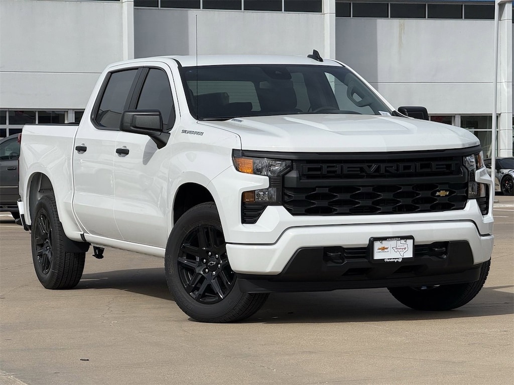 8-Speed Automatic, Jet Black Premium Cloth, Custom Convenience Package, Custom Value Package, Electric Rear-Window Defogger, EZ Lift Power Lock and Release Tailgate, High Capacity Suspension Package, Hitch Guidance, LED Cargo Area Lighting, Remote Vehicle Starter System, Theft Deterrent System (unauthorized Entry), Trailering Package.4D Crew Cab Summit White 2026 Chevrolet Silverado 1500 Custom18/21 City/Highway MPG2.7L I4 Turbocharged DOHC 16V LEV3-SULEV30 310hp RWD 8-Speed AutomaticVandergriff Chevrolet has been Dealer of the Year since 2018!!! Here at Vandergriff Chevrolet you will find low cost and affordable gas saving used pre owned and certified pre owned along with luxury pre owned!! We have it all, if you donât see what you are looking for WE CAN LOCATE IT. Our showroom amenities and service drive are open extended hours for your convenience. Please stop by and see why were the BEST PLACE to buy your next new or used Chevrolet, EMPLOYEE PRICING FOR EVERYONE HURRY! Visit our REDESIGNED State-of-the-Art Dealership. Not to mention a HUGE selection of New Pre-Owned vehicles will make Vandergriff Chevrolet your premiere choice for Chevrolet dealerships in the Dallas Fort Worth area. Stop by and see why we are where DFW SHOPS FOR USED CARS Customer Requested and Dealer Added Options are extra. Serving the DFW Metroplex for over 80 Years, Vandergriff Chevrolet located at 1200 W. I-20 in Arlington TX is your premier retailer of new and used Chevrolet vehicles. Our dedicated sales staff and top-trained technicians are here to make your shopping and service experience fun, easy and financially advantageous. Please utilize our various online resources and allow our excellent network of people to put you in your ideal car truck or SUV today. Serving Arlington Grand Prairie Forth Worth Mansfield Burleson Irving Hurst Euless Bedford Plano McKinney Tyler Midlothian Weatherford Grapevine Frisco Little Elm Irving Grapevine Dallas The colony Waxahachie Austin Houston and many other outlining cities. The Vandergriff Protection Package adds great peace of mind knowing that the vehicle has been inspected and reconditioned. All vehicles must pass state inspection and meet all safety standards prior to finalization of sale. Prices are fluid and change daily due to market conditions or reconditioning needs to meet retail standards. We do not hold cars, it's first come first serve so call now while it's here! ! ! ! Call today (682)-301-7391 ! ! !Price does not include tax, title, license, or dealer added equipment.