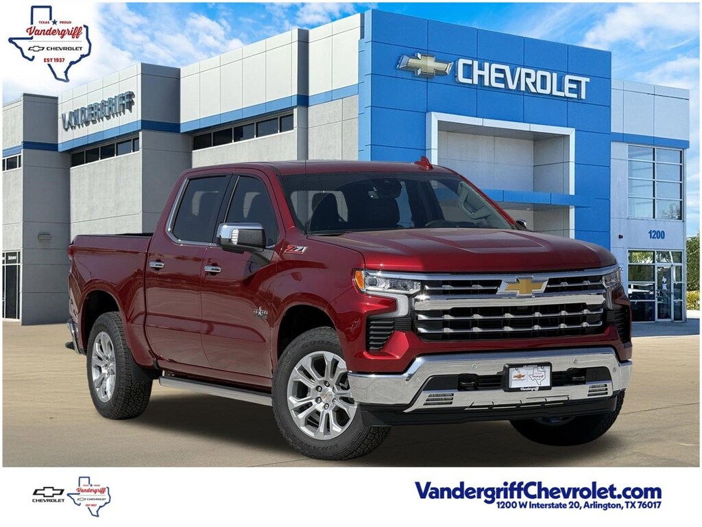 10-Speed Automatic, 4WD, Jet Black Leather, 15 Diagonal Multicolor Head-Up Display, 2 USB Data Ports, 2nd Row Heated Outboard Seats, Adaptive Cruise Control, Bed View Camera, Dual Exhaust w/Black Exhaust Tips, Floor Mounted Center Console, HD Surround Vision, Heavy-Duty Air Filter, High Capacity Suspension Package, Hill Descent Control, Hitch Guidance, LTZ Convenience Package, LTZ Convenience Package II, LTZ Plus Package, LTZ Premium Texas Edition, Off-Road Suspension, Perimeter Lighting, Power Sliding Rear Window w/Rear Defogger, Power Sunroof, Power Tailgate, Power Tilt & Telescoping Steering Column, Premium Bose 7-Speaker Sound System, Rear Camera Mirror, Rear Cross Traffic Braking, Rear Pedestrian Alert, Safety Alert Seat, Safety Package, Technology Package, Texas Edition Badging, Trailer Camera Provisions, Trailer Side Blind Zone Alert, Trailering Package, Ultrasonic Front & Rear Park Assist, Universal Home Remote, Ventilated Driver & Front Passenger Seats, Wireless Charging, Z71 Off-Road Package.4D Crew Cab Radiant Red Tintcoat 2026 Chevrolet Silverado 1500 LTZEcoTec3 5.3L V8 4WD 10-Speed AutomaticVandergriff Chevrolet has been Dealer of the Year since 2018!!! Here at Vandergriff Chevrolet you will find low cost and affordable gas saving used pre owned and certified pre owned along with luxury pre owned!! We have it all, if you donât see what you are looking for WE CAN LOCATE IT. Our showroom amenities and service drive are open extended hours for your convenience. Please stop by and see why were the BEST PLACE to buy your next new or used Chevrolet, EMPLOYEE PRICING FOR EVERYONE HURRY! Visit our REDESIGNED State-of-the-Art Dealership. Not to mention a HUGE selection of New Pre-Owned vehicles will make Vandergriff Chevrolet your premiere choice for Chevrolet dealerships in the Dallas Fort Worth area. Stop by and see why we are where DFW SHOPS FOR USED CARS Customer Requested and Dealer Added Options are extra. Serving the DFW Metroplex for over 80 Years, Vandergriff Chevrolet located at 1200 W. I-20 in Arlington TX is your premier retailer of new and used Chevrolet vehicles. Our dedicated sales staff and top-trained technicians are here to make your shopping and service experience fun, easy and financially advantageous. Please utilize our various online resources and allow our excellent network of people to put you in your ideal car truck or SUV today. Serving Arlington Grand Prairie Forth Worth Mansfield Burleson Irving Hurst Euless Bedford Plano McKinney Tyler Midlothian Weatherford Grapevine Frisco Little Elm Irving Grapevine Dallas The colony Waxahachie Austin Houston and many other outlining cities. The Vandergriff Protection Package adds great peace of mind knowing that the vehicle has been inspected and reconditioned. All vehicles must pass state inspection and meet all safety standards prior to finalization of sale. Prices are fluid and change daily due to market conditions or reconditioning needs to meet retail standards. We do not hold cars, it's first come first serve so call now while it's here! ! ! ! Call today (682)-301-7391 ! ! !Price does not include tax, title, license, or dealer added equipment.