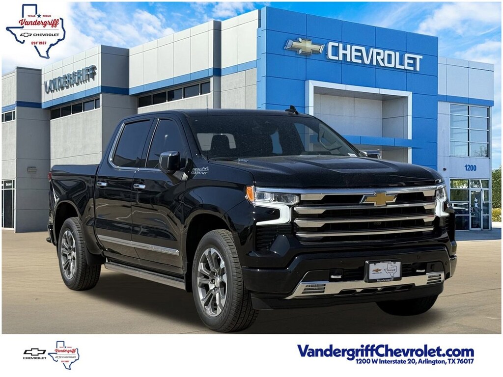 10-Speed Automatic, Hxc/Jet Black Leather, 15 Diagonal Multicolor Head-Up Display, High Capacity Suspension Package, Hitch Guidance, Power Sunroof, Power Tailgate, Rear Camera Mirror, Technology Package, Trailering Package.4D Crew Cab Black 2026 Chevrolet Silverado 1500 High Country23/28 City/Highway MPG3.0L I6 RWD 10-Speed AutomaticVandergriff Chevrolet has been Dealer of the Year since 2018!!! Here at Vandergriff Chevrolet you will find low cost and affordable gas saving used pre owned and certified pre owned along with luxury pre owned!! We have it all, if you donât see what you are looking for WE CAN LOCATE IT. Our showroom amenities and service drive are open extended hours for your convenience. Please stop by and see why were the BEST PLACE to buy your next new or used Chevrolet, EMPLOYEE PRICING FOR EVERYONE HURRY! Visit our REDESIGNED State-of-the-Art Dealership. Not to mention a HUGE selection of New Pre-Owned vehicles will make Vandergriff Chevrolet your premiere choice for Chevrolet dealerships in the Dallas Fort Worth area. Stop by and see why we are where DFW SHOPS FOR USED CARS Customer Requested and Dealer Added Options are extra. Serving the DFW Metroplex for over 80 Years, Vandergriff Chevrolet located at 1200 W. I-20 in Arlington TX is your premier retailer of new and used Chevrolet vehicles. Our dedicated sales staff and top-trained technicians are here to make your shopping and service experience fun, easy and financially advantageous. Please utilize our various online resources and allow our excellent network of people to put you in your ideal car truck or SUV today. Serving Arlington Grand Prairie Forth Worth Mansfield Burleson Irving Hurst Euless Bedford Plano McKinney Tyler Midlothian Weatherford Grapevine Frisco Little Elm Irving Grapevine Dallas The colony Waxahachie Austin Houston and many other outlining cities. The Vandergriff Protection Package adds great peace of mind knowing that the vehicle has been inspected and reconditioned. All vehicles must pass state inspection and meet all safety standards prior to finalization of sale. Prices are fluid and change daily due to market conditions or reconditioning needs to meet retail standards. We do not hold cars, it's first come first serve so call now while it's here! ! ! ! Call today (682)-301-7391 ! ! !Price does not include tax, title, license, or dealer added equipment.