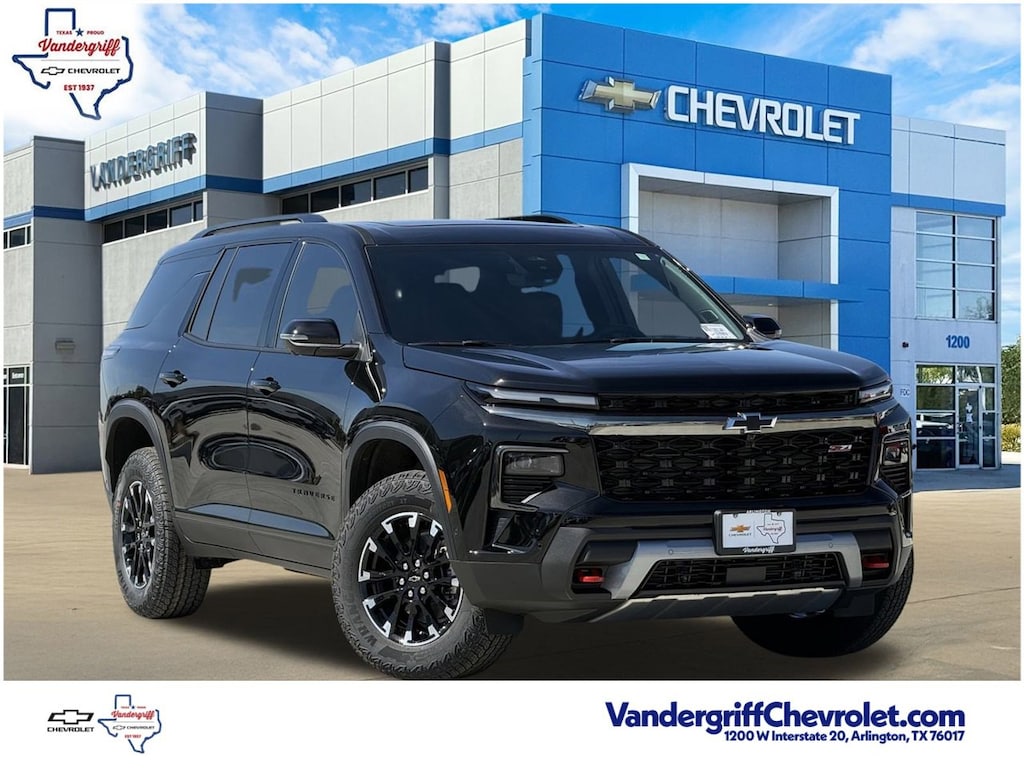AWD, 3 Years OnStar One, Active Noise Cancellation, Bose Premium 12-Speaker Audio System Feature, Driver Attention Assist, Driver Confidence Package, Enhanced Automatic Parking Assist, Enhanced Driving Package, HD Surround Vision, Key Card, Navigation System, Power Dual Glass Panoramic Sliding Sunroof, Power Liftgate, Power Outlet, Rear Camera Mirror, Rear Pedestrian Alert, Super Cruise, Traffic Sign Recognition.4D Sport Utility Mosaic Black Metallic 2026 Chevrolet Traverse Z7120/24 City/Highway MPG2.5L DOHC AWD 8-Speed AutomaticVandergriff Chevrolet has been Dealer of the Year since 2018!!! Here at Vandergriff Chevrolet you will find low cost and affordable gas saving used pre owned and certified pre owned along with luxury pre owned!! We have it all, if you donât see what you are looking for WE CAN LOCATE IT. Our showroom amenities and service drive are open extended hours for your convenience. Please stop by and see why were the BEST PLACE to buy your next new or used Chevrolet, EMPLOYEE PRICING FOR EVERYONE HURRY! Visit our REDESIGNED State-of-the-Art Dealership. Not to mention a HUGE selection of New Pre-Owned vehicles will make Vandergriff Chevrolet your premiere choice for Chevrolet dealerships in the Dallas Fort Worth area. Stop by and see why we are where DFW SHOPS FOR USED CARS Customer Requested and Dealer Added Options are extra. Serving the DFW Metroplex for over 80 Years, Vandergriff Chevrolet located at 1200 W. I-20 in Arlington TX is your premier retailer of new and used Chevrolet vehicles. Our dedicated sales staff and top-trained technicians are here to make your shopping and service experience fun, easy and financially advantageous. Please utilize our various online resources and allow our excellent network of people to put you in your ideal car truck or SUV today. Serving Arlington Grand Prairie Forth Worth Mansfield Burleson Irving Hurst Euless Bedford Plano McKinney Tyler Midlothian Weatherford Grapevine Frisco Little Elm Irving Grapevine Dallas The colony Waxahachie Austin Houston and many other outlining cities. The Vandergriff Protection Package adds great peace of mind knowing that the vehicle has been inspected and reconditioned. All vehicles must pass state inspection and meet all safety standards prior to finalization of sale. Prices are fluid and change daily due to market conditions or reconditioning needs to meet retail standards. We do not hold cars, it's first come first serve so call now while it's here! ! ! ! Call today (682)-301-7391 ! ! !Price does not include tax, title, license, or dealer added equipment.