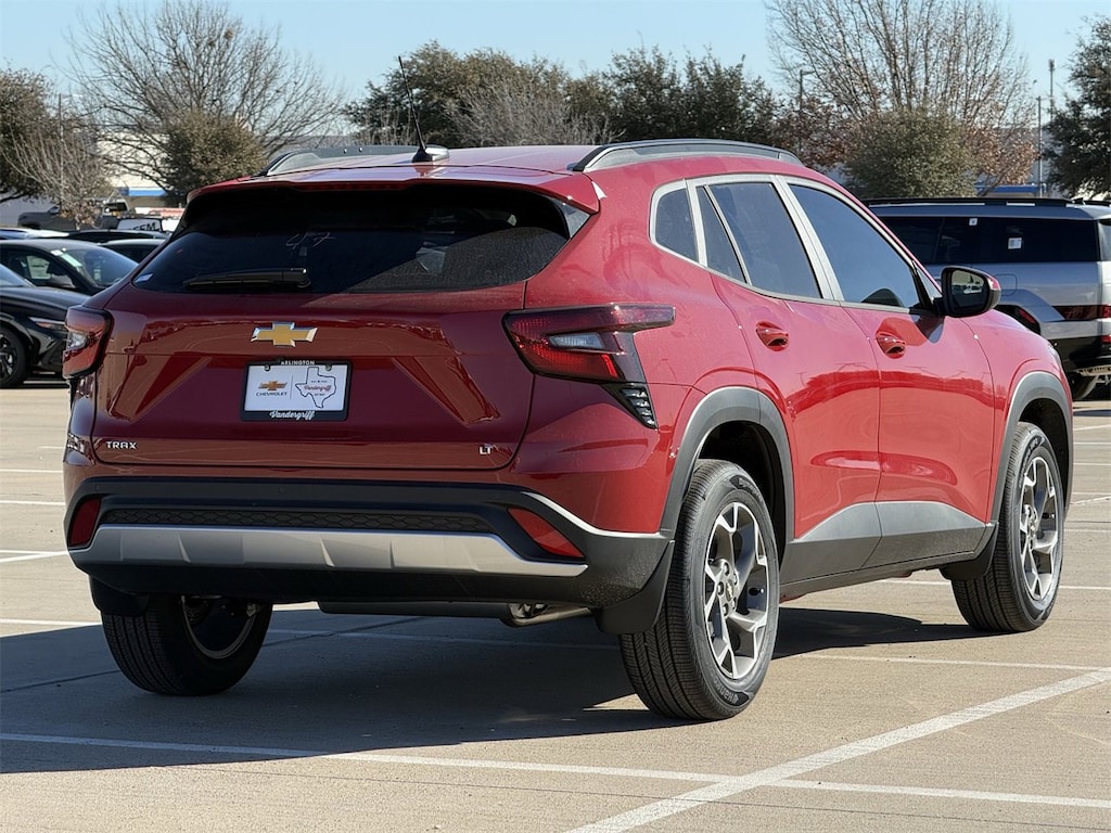 Adaptive Cruise Control, Driver Confidence Package, Front Doors Keyless Open, Heated Driver and Front Passenger Seats, Heated Power-Adjustable Outside Mirrors, Heated Steering Wheel, Lane Change Alert with Side Blind Zone Alert, LT Convenience Package, Rear Cross Traffic Alert, Rear Park Assist, Wrapped Steering Wheel.4D Sport Utility Apex Red 2026 Chevrolet Trax LT28/32 City/Highway MPGECOTEC 1.2L Turbo FWD 6-Speed AutomaticVandergriff Chevrolet has been Dealer of the Year since 2018!!! Here at Vandergriff Chevrolet you will find low cost and affordable gas saving used pre owned and certified pre owned along with luxury pre owned!! We have it all, if you donât see what you are looking for WE CAN LOCATE IT. Our showroom amenities and service drive are open extended hours for your convenience. Please stop by and see why were the BEST PLACE to buy your next new or used Chevrolet, EMPLOYEE PRICING FOR EVERYONE HURRY! Visit our REDESIGNED State-of-the-Art Dealership. Not to mention a HUGE selection of New Pre-Owned vehicles will make Vandergriff Chevrolet your premiere choice for Chevrolet dealerships in the Dallas Fort Worth area. Stop by and see why we are where DFW SHOPS FOR USED CARS Customer Requested and Dealer Added Options are extra. Serving the DFW Metroplex for over 80 Years, Vandergriff Chevrolet located at 1200 W. I-20 in Arlington TX is your premier retailer of new and used Chevrolet vehicles. Our dedicated sales staff and top-trained technicians are here to make your shopping and service experience fun, easy and financially advantageous. Please utilize our various online resources and allow our excellent network of people to put you in your ideal car truck or SUV today. Serving Arlington Grand Prairie Forth Worth Mansfield Burleson Irving Hurst Euless Bedford Plano McKinney Tyler Midlothian Weatherford Grapevine Frisco Little Elm Irving Grapevine Dallas The colony Waxahachie Austin Houston and many other outlining cities. The Vandergriff Protection Package adds great peace of mind knowing that the vehicle has been inspected and reconditioned. All vehicles must pass state inspection and meet all safety standards prior to finalization of sale. Prices are fluid and change daily due to market conditions or reconditioning needs to meet retail standards. We do not hold cars, it's first come first serve so call now while it's here! ! ! ! Call today (682)-301-7391 ! ! !Price does not include tax, title, license, or dealer added equipment.