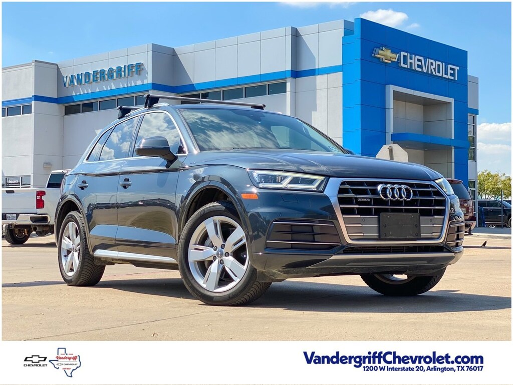 Black w/Leather Seating Surfaces, ABS brakes, Alloy wheels, Compass, Electronic Stability Control, Front dual zone A/C, Heated door mirrors, Heated front seats, Illuminated entry, Low tire pressure warning, Power Liftgate, Remote keyless entry, Traction control.Clean CARFAX.4D Sport Utility Monsoon Gray Metallic 2019 Audi Q5 2.0T Prestige quattro 22/27 City/Highway MPG 2.0L TFSI 7-Speed Automatic S tronic quattroVandergriff Chevrolet has been Dealer of the Year since 2018!!! Here at Vandergriff Chevrolet you will find low cost and affordable gas saving used pre owned and certified pre owned along with luxury pre owned!! We have it all, if you donât see what you are looking for WE CAN LOCATE IT. Our showroom amenities and service drive are open extended hours for your convenience. Please stop by and see why were the BEST PLACE to buy your next new or used Chevrolet, EMPLOYEE PRICING FOR EVERYONE HURRY! Visit our REDESIGNED State-of-the-Art Dealership. Not to mention a HUGE selection of New Pre-Owned vehicles will make Vandergriff Chevrolet your premiere choice for Chevrolet dealerships in the Dallas Fort Worth area. Stop by and see why we are where DFW SHOPS FOR USED CARS Customer Requested and Dealer Added Options are extra. Serving the DFW Metroplex for over 80 Years, Vandergriff Chevrolet located at 1200 W. I-20 in Arlington TX is your premier retailer of new and used Chevrolet vehicles. Our dedicated sales staff and top-trained technicians are here to make your shopping and service experience fun, easy and financially advantageous. Please utilize our various online resources and allow our excellent network of people to put you in your ideal car truck or SUV today. Serving Arlington Grand Prairie Forth Worth Mansfield Burleson Irving Hurst Euless Bedford Plano McKinney Tyler Midlothian Weatherford Grapevine Frisco Little Elm Irving Grapevine Dallas The colony Waxahachie Austin Houston and many other outlining cities. The Vandergriff Protection Package adds great peace of mind knowing that the vehicle has been inspected and reconditioned. All vehicles must pass state inspection and meet all safety standards prior to finalization of sale. Prices are fluid and change daily due to market conditions or reconditioning needs to meet retail standards. We do not hold cars, it's first come first serve so call now while it's here! ! ! ! Call today (682)-301-7391 ! ! !