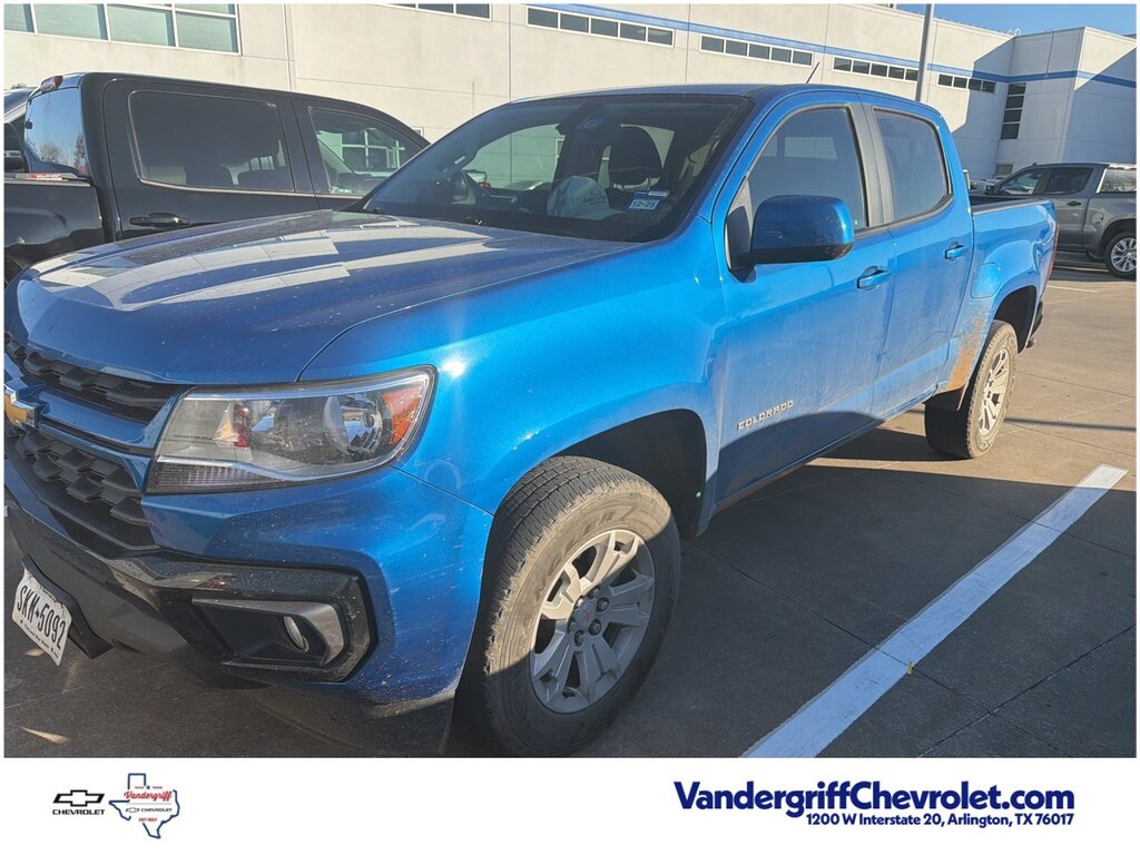 VEHICLE DETAILED, RECENT OIL CHANGE, PASSED DEALER INSPECTION.CARFAX One-Owner.4D Crew Cab Bright Blue Metallic 2022 Chevrolet Colorado LT 18/25 City/Highway MPG V6 8-Speed Automatic RWDVandergriff Chevrolet has been Dealer of the Year since 2018!!! Here at Vandergriff Chevrolet you will find low cost and affordable gas saving used pre owned and certified pre owned along with luxury pre owned!! We have it all, if you donât see what you are looking for WE CAN LOCATE IT. Our showroom amenities and service drive are open extended hours for your convenience. Please stop by and see why were the BEST PLACE to buy your next new or used Chevrolet, EMPLOYEE PRICING FOR EVERYONE HURRY! Visit our REDESIGNED State-of-the-Art Dealership. Not to mention a HUGE selection of New Pre-Owned vehicles will make Vandergriff Chevrolet your premiere choice for Chevrolet dealerships in the Dallas Fort Worth area. Stop by and see why we are where DFW SHOPS FOR USED CARS Customer Requested and Dealer Added Options are extra. Serving the DFW Metroplex for over 80 Years, Vandergriff Chevrolet located at 1200 W. I-20 in Arlington TX is your premier retailer of new and used Chevrolet vehicles. Our dedicated sales staff and top-trained technicians are here to make your shopping and service experience fun, easy and financially advantageous. Please utilize our various online resources and allow our excellent network of people to put you in your ideal car truck or SUV today. Serving Arlington Grand Prairie Forth Worth Mansfield Burleson Irving Hurst Euless Bedford Plano McKinney Tyler Midlothian Weatherford Grapevine Frisco Little Elm Irving Grapevine Dallas The colony Waxahachie Austin Houston and many other outlining cities. The Vandergriff Protection Package adds great peace of mind knowing that the vehicle has been inspected and reconditioned. All vehicles must pass state inspection and meet all safety standards prior to finalization of sale. Prices are fluid and change daily due to market conditions or reconditioning needs to meet retail standards. We do not hold cars, it's first come first serve so call now while it's here! ! ! ! Call today (682)-301-7391 ! ! !
