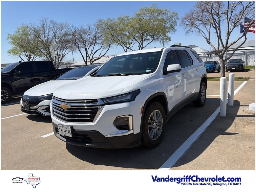 GM CERTIFIED / CERTIFIED, BLUE TOOTH, KEYLESS ENTRY, REMOTE START, NAVIGATION / NAVI / GPS, KEYLESS START, VEHICLE DETAILED, RECENT OIL CHANGE, PASSED DEALER INSPECTION, BACK UP CAMERA.CARFAX One-Owner. Clean CARFAX.Certified. Chevrolet Certified Pre-Owned Details:* 24 months/24,000 miles (whichever comes first) Certified Pre-Owned Scheduled Maintenance Plan and 3 days/150 miles (whichever comes first) Vehicle Exchange Program. SiriusXM 3-month trial subscription.* 172 Point Inspection* Roadside Assistance* Warranty Deductible: $0* Transferable Warranty* Powertrain Limited Warranty: 72 Month/100,000 Mile (whichever comes first) from original in-service date* Vehicle History* Limited Warranty: 12 Month/12,000 Mile (whichever comes first) from certified purchase date4D Sport Utility Summit White 2023 Chevrolet Traverse LT 1LT 18/27 City/Highway MPG 3.6L V6 SIDI VVT 9-Speed Automatic FWDBENEFITS OF BUYING CERTIFIED: Roadside Assistance 172 Point Inspection Powertrain Limited Warranty: 72 Month/100,000 Mile (whichever comes first) from original in-service date 24 months/24,000 miles (whichever comes first) CPO Scheduled Maintenance Plan SiriusXM 3-month trial subscription Limited Warranty: 12 Month/12,000 Mile (whichever comes first) from certified purchase date AND MORE!!! We will be more than happy to answer any questions you may have, send you additional photos, or set you an appointment to see it in person from our Product Specialist. Please call at (817) 305-7391! All vehicles must pass state inspection and meet all safety standards prior to finalization of sale. Prices are fluid and change daily due to market conditions or reconditioning needs to meet retail standards. We do not hold cars, its first come first serve so call now while its here! The price offerings on this web site constitute a private offer not available to the general public. To qualify for these prices, you must print the screen for the vehicle selected and present it in person. ! ! ! Call today (682)-301-7391 ! ! !