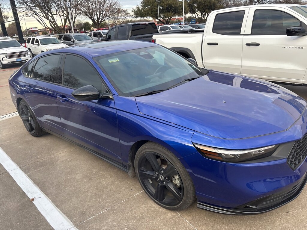 VEHICLE DETAILED, RECENT OIL CHANGE, PASSED DEALER INSPECTION, 2.0L 16V DOHC.CARFAX One-Owner. Clean CARFAX.4D Sedan Dark Blue 2024 Honda Accord Hybrid Sport-L 46/41 City/Highway MPG 2.0L 16V DOHC eCVT FWDVandergriff Chevrolet has been Dealer of the Year since 2018!!! Here at Vandergriff Chevrolet you will find low cost and affordable gas saving used pre owned and certified pre owned along with luxury pre owned!! We have it all, if you donât see what you are looking for WE CAN LOCATE IT. Our showroom amenities and service drive are open extended hours for your convenience. Please stop by and see why were the BEST PLACE to buy your next new or used Chevrolet, EMPLOYEE PRICING FOR EVERYONE HURRY! Visit our REDESIGNED State-of-the-Art Dealership. Not to mention a HUGE selection of New Pre-Owned vehicles will make Vandergriff Chevrolet your premiere choice for Chevrolet dealerships in the Dallas Fort Worth area. Stop by and see why we are where DFW SHOPS FOR USED CARS Customer Requested and Dealer Added Options are extra. Serving the DFW Metroplex for over 80 Years, Vandergriff Chevrolet located at 1200 W. I-20 in Arlington TX is your premier retailer of new and used Chevrolet vehicles. Our dedicated sales staff and top-trained technicians are here to make your shopping and service experience fun, easy and financially advantageous. Please utilize our various online resources and allow our excellent network of people to put you in your ideal car truck or SUV today. Serving Arlington Grand Prairie Forth Worth Mansfield Burleson Irving Hurst Euless Bedford Plano McKinney Tyler Midlothian Weatherford Grapevine Frisco Little Elm Irving Grapevine Dallas The colony Waxahachie Austin Houston and many other outlining cities. The Vandergriff Protection Package adds great peace of mind knowing that the vehicle has been inspected and reconditioned. All vehicles must pass state inspection and meet all safety standards prior to finalization of sale. Prices are fluid and change daily due to market conditions or reconditioning needs to meet retail standards. We do not hold cars, it's first come first serve so call now while it's here! ! ! ! Call today (682)-301-7391 ! ! !