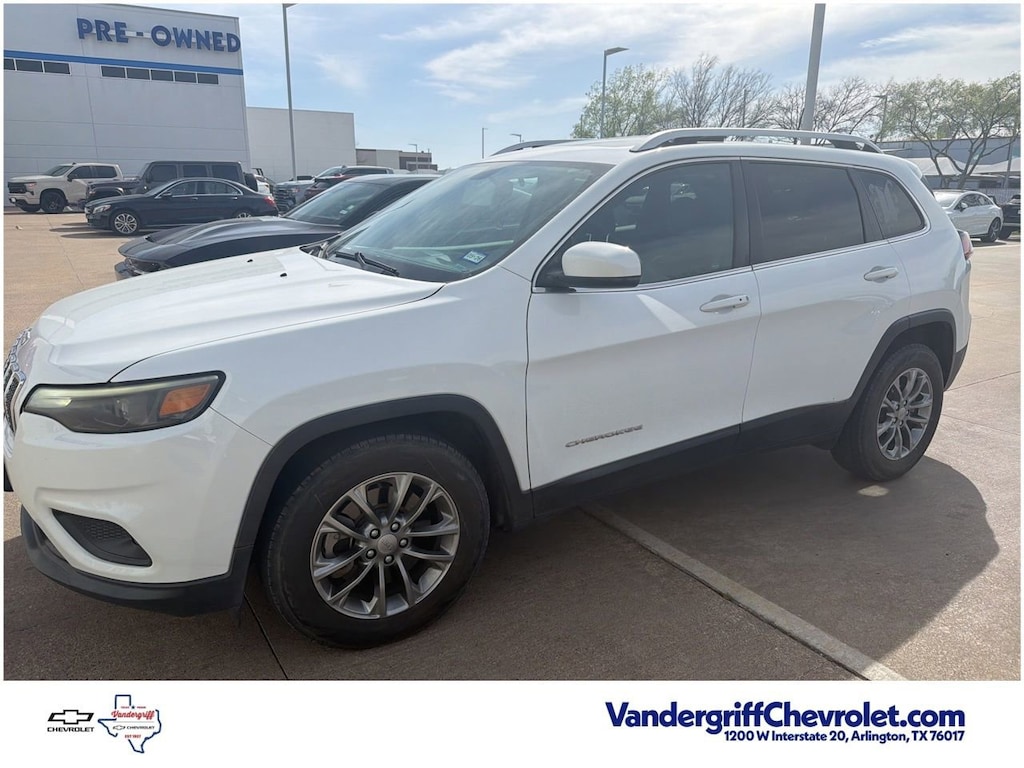 BLUE TOOTH, VEHICLE DETAILED, RECENT OIL CHANGE, PASSED DEALER INSPECTION.4D Sport Utility Bright White Clearcoat 2019 Jeep Cherokee Latitude Plus 22/31 City/Highway MPG 2.4L I4 9-Speed 948TE Automatic FWDVandergriff Chevrolet has been Dealer of the Year since 2018!!! Here at Vandergriff Chevrolet you will find low cost and affordable gas saving used pre owned and certified pre owned along with luxury pre owned!! We have it all, if you donât see what you are looking for WE CAN LOCATE IT. Our showroom amenities and service drive are open extended hours for your convenience. Please stop by and see why were the BEST PLACE to buy your next new or used Chevrolet, EMPLOYEE PRICING FOR EVERYONE HURRY! Visit our REDESIGNED State-of-the-Art Dealership. Not to mention a HUGE selection of New Pre-Owned vehicles will make Vandergriff Chevrolet your premiere choice for Chevrolet dealerships in the Dallas Fort Worth area. Stop by and see why we are where DFW SHOPS FOR USED CARS Customer Requested and Dealer Added Options are extra. Serving the DFW Metroplex for over 80 Years, Vandergriff Chevrolet located at 1200 W. I-20 in Arlington TX is your premier retailer of new and used Chevrolet vehicles. Our dedicated sales staff and top-trained technicians are here to make your shopping and service experience fun, easy and financially advantageous. Please utilize our various online resources and allow our excellent network of people to put you in your ideal car truck or SUV today. Serving Arlington Grand Prairie Forth Worth Mansfield Burleson Irving Hurst Euless Bedford Plano McKinney Tyler Midlothian Weatherford Grapevine Frisco Little Elm Irving Grapevine Dallas The colony Waxahachie Austin Houston and many other outlining cities. The Vandergriff Protection Package adds great peace of mind knowing that the vehicle has been inspected and reconditioned. All vehicles must pass state inspection and meet all safety standards prior to finalization of sale. Prices are fluid and change daily due to market conditions or reconditioning needs to meet retail standards. We do not hold cars, it's first come first serve so call now while it's here! ! ! ! Call today (682)-301-7391 ! ! !