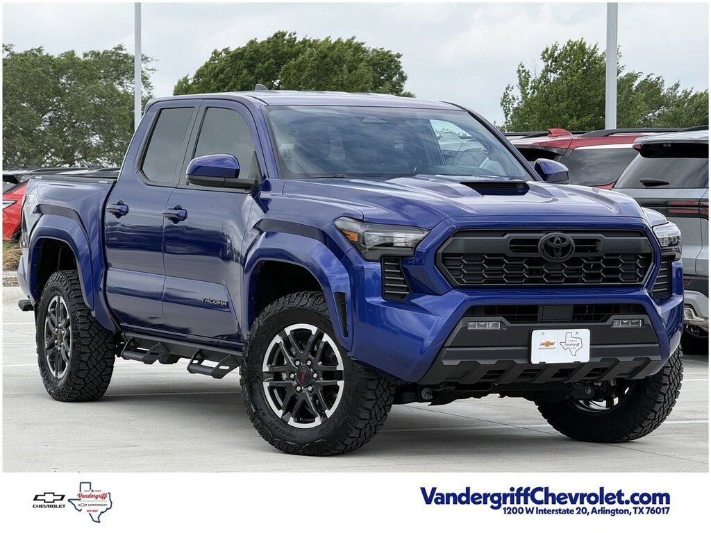 BLUE TOOTH, KEYLESS ENTRY, VEHICLE DETAILED, RECENT OIL CHANGE, PASSED DEALER INSPECTION, BACK UP CAMERA, LOW MILES, 4WD.CARFAX One-Owner. Clean CARFAX.4D Double Cab Blue Crush Metallic 2025 Toyota Tacoma TRD Sport 19/23 City/Highway MPG 2.4L 4-Cylinder 8-Speed Automatic 4WDVandergriff Chevrolet has been Dealer of the Year since 2018!!! Here at Vandergriff Chevrolet you will find low cost and affordable gas saving used pre owned and certified pre owned along with luxury pre owned!! We have it all, if you donât see what you are looking for WE CAN LOCATE IT. Our showroom amenities and service drive are open extended hours for your convenience. Please stop by and see why were the BEST PLACE to buy your next new or used Chevrolet, EMPLOYEE PRICING FOR EVERYONE HURRY! Visit our REDESIGNED State-of-the-Art Dealership. Not to mention a HUGE selection of New Pre-Owned vehicles will make Vandergriff Chevrolet your premiere choice for Chevrolet dealerships in the Dallas Fort Worth area. Stop by and see why we are where DFW SHOPS FOR USED CARS Customer Requested and Dealer Added Options are extra. Serving the DFW Metroplex for over 80 Years, Vandergriff Chevrolet located at 1200 W. I-20 in Arlington TX is your premier retailer of new and used Chevrolet vehicles. Our dedicated sales staff and top-trained technicians are here to make your shopping and service experience fun, easy and financially advantageous. Please utilize our various online resources and allow our excellent network of people to put you in your ideal car truck or SUV today. Serving Arlington Grand Prairie Forth Worth Mansfield Burleson Irving Hurst Euless Bedford Plano McKinney Tyler Midlothian Weatherford Grapevine Frisco Little Elm Irving Grapevine Dallas The colony Waxahachie Austin Houston and many other outlining cities. The Vandergriff Protection Package adds great peace of mind knowing that the vehicle has been inspected and reconditioned. All vehicles must pass state inspection and meet all safety standards prior to finalization of sale. Prices are fluid and change daily due to market conditions or reconditioning needs to meet retail standards. We do not hold cars, it's first come first serve so call now while it's here! ! ! ! Call today (682)-301-7391 ! ! !